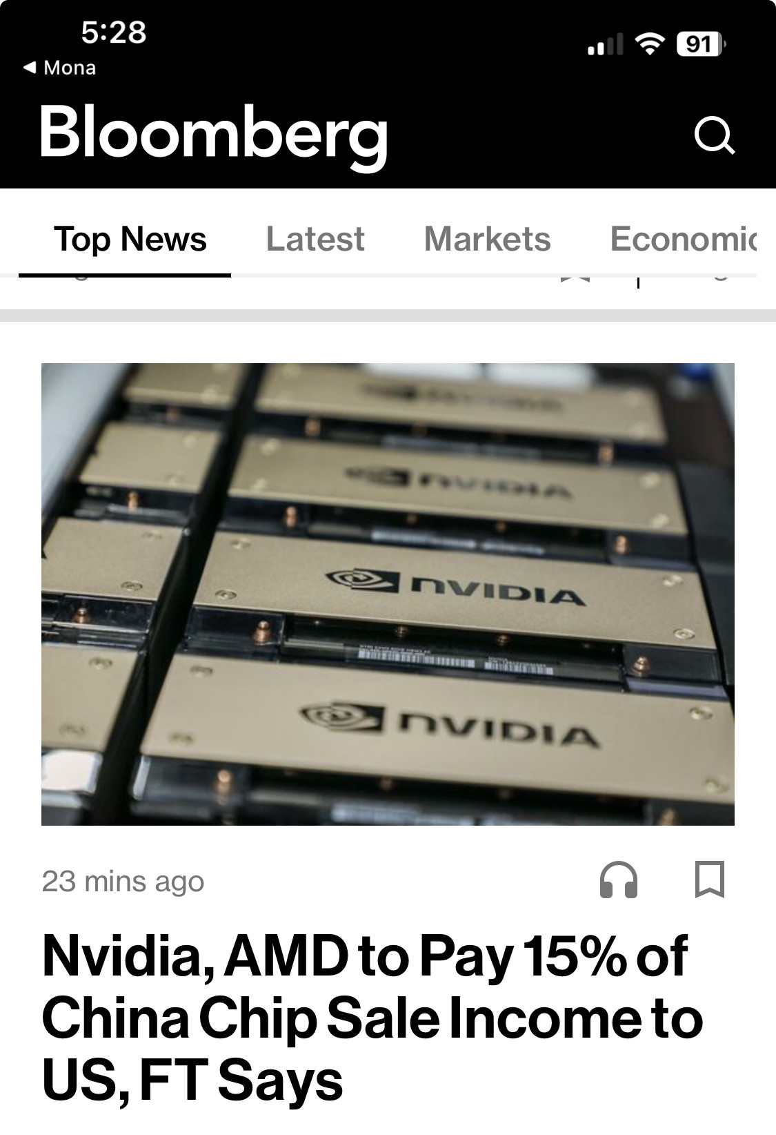 So dumb. Either there’s a national security issue or there isn’t. If there is, 15% of revenues isn’t going to purchase any adequate defense. If there isn’t, why the vig?