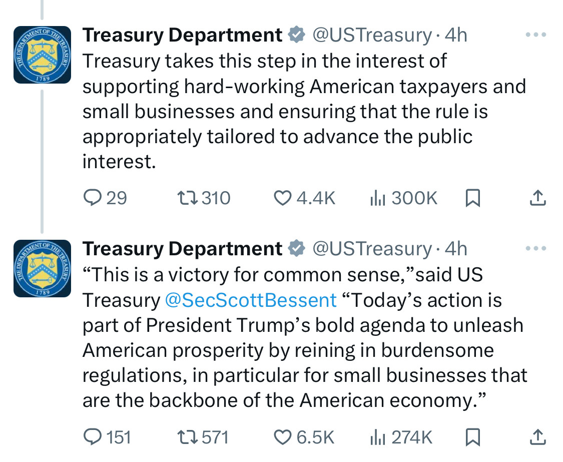 drain the swamp. screenshot from thread beginning xcancel.com/ustreasury/s...